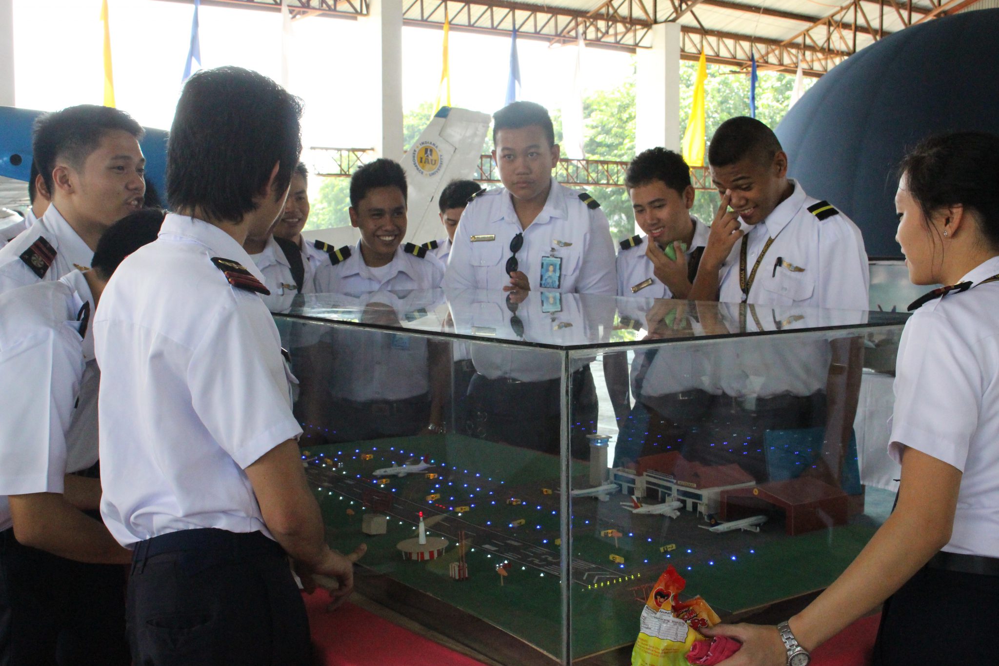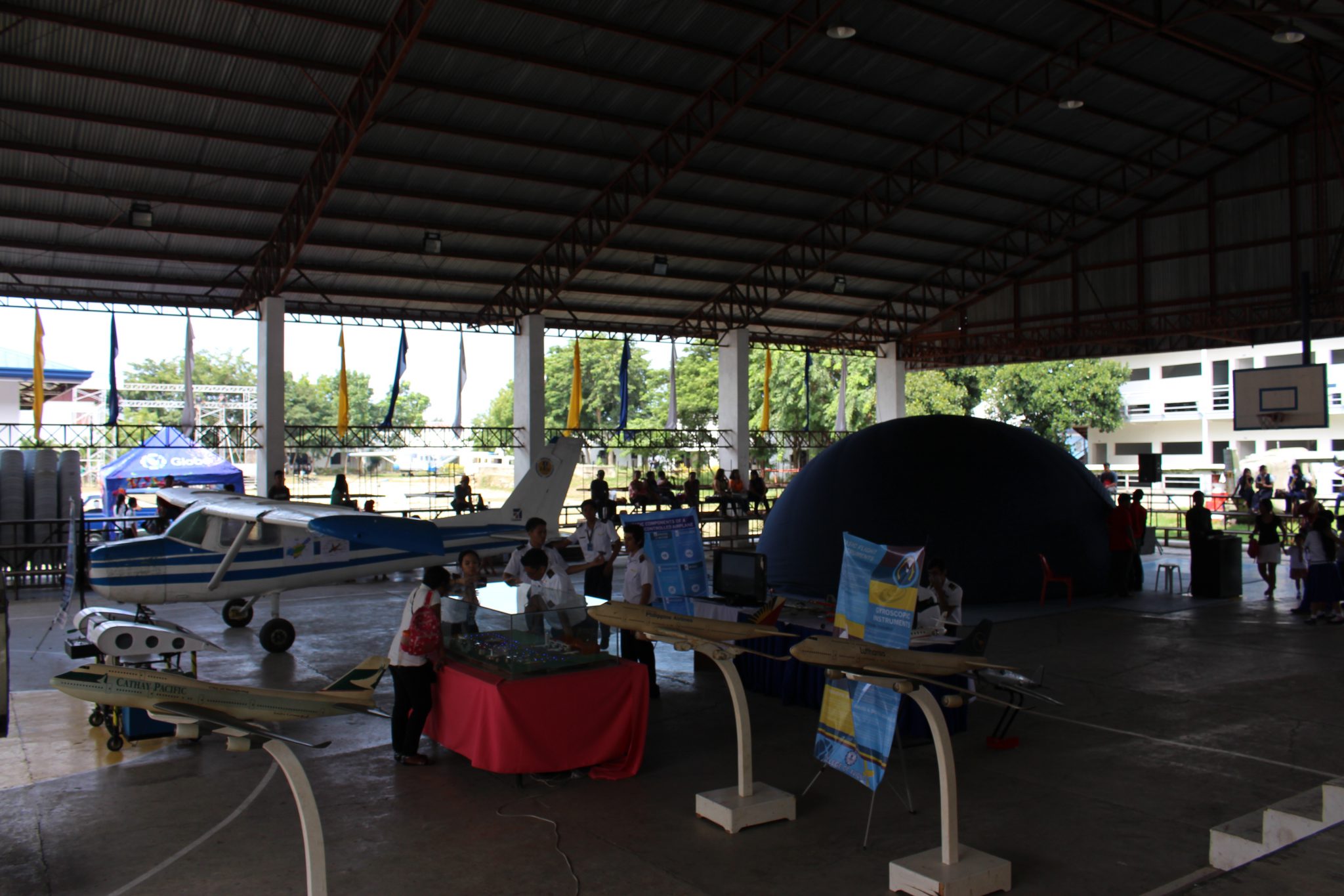 Featured in the exhibit were electronic miniature aircrafts, standard-sized propeller and aircraft exhibition video clip of the College of Aerospace Engineering; aircraft engine and Cessna static display of the College of Aircraft Maintenance Technology; the Nomad aircraft of the College of Airline Management; miniature airplanes, landing gears, and the tableau replica of the Mactan-Cebu International Airport (MCIA), and the high-end flight simulator of the College of Aviation Technology.