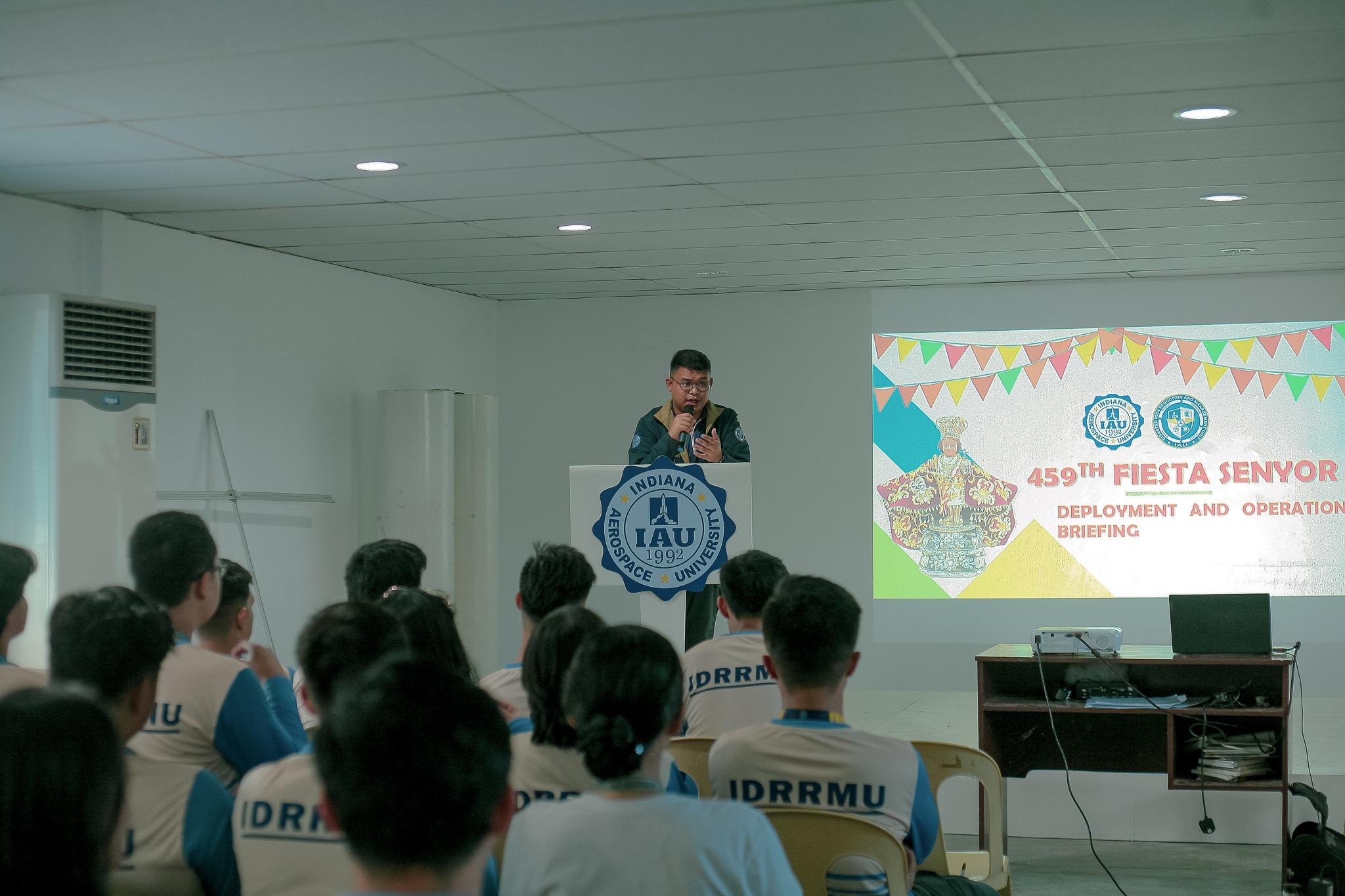 On January 10, 2024, IAUDRRMU conducted a Deployment Briefing & Send-Off Activity at the Aerospacers’ Hall, attended by all members rendering duty for the Sinulog-related activities.